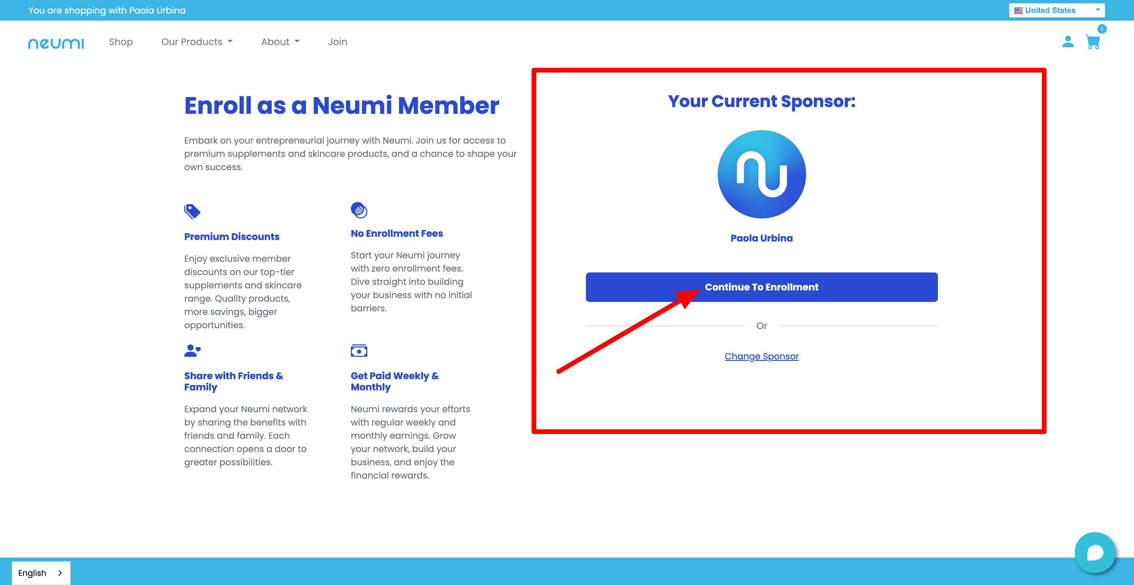 If a Neumi Member provided you with a link, click on it to begin shopping for Neumi products.