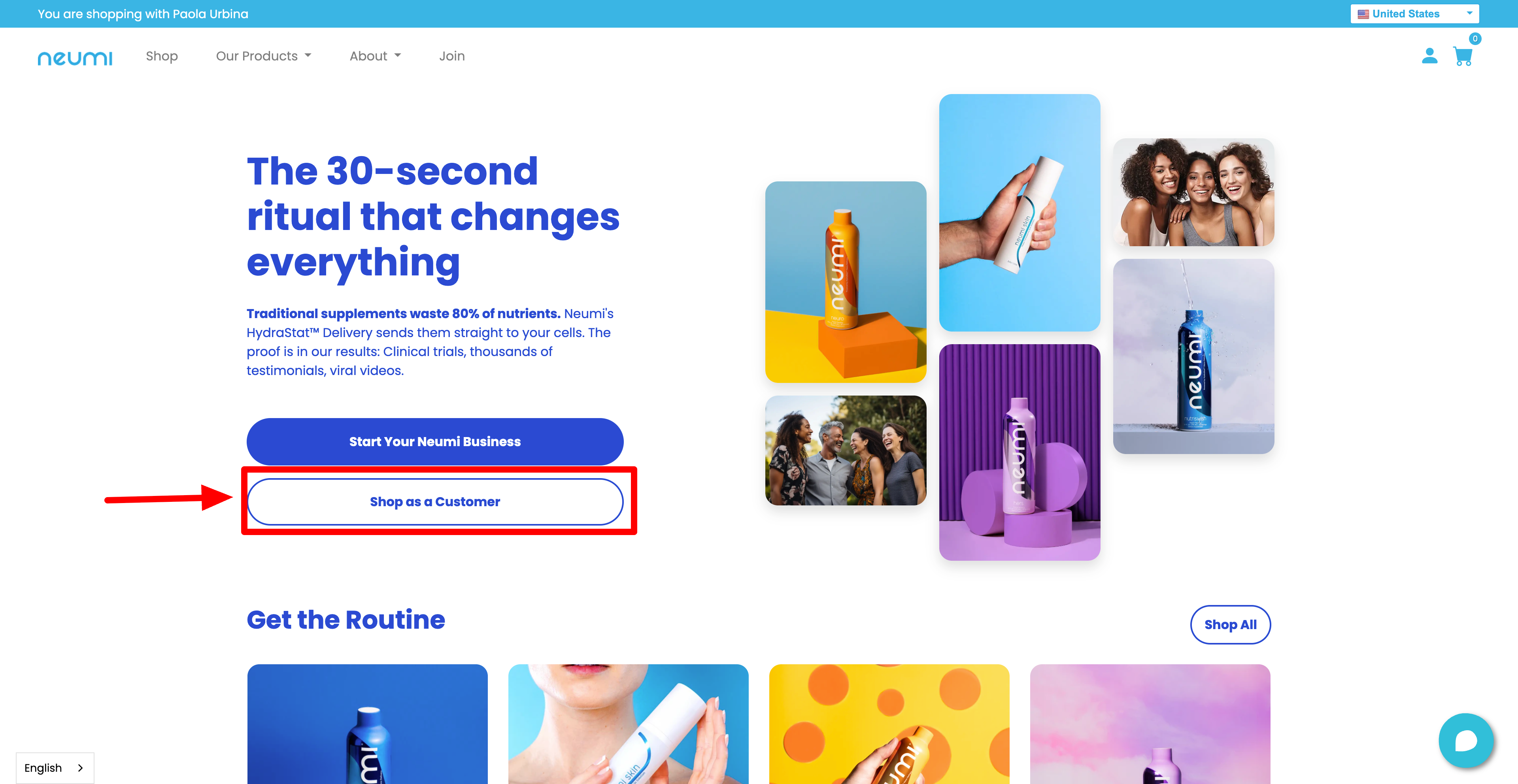 If you want to sign up/order as a member, please select the “Start Your Neumi Business” tab.