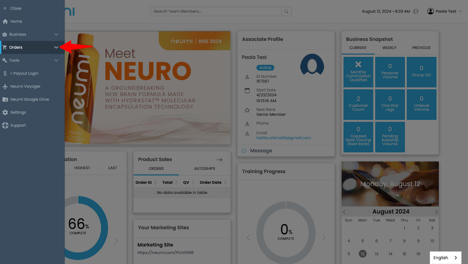 - When you click the three lines, a “Menu” will appear, showing different options. Click where it says “Orders.”