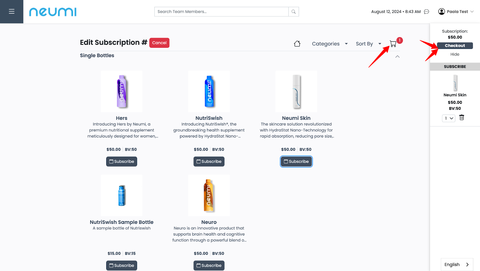 - You will see the product on the checkout cart. Please continue the process by clicking on “Checkout.”