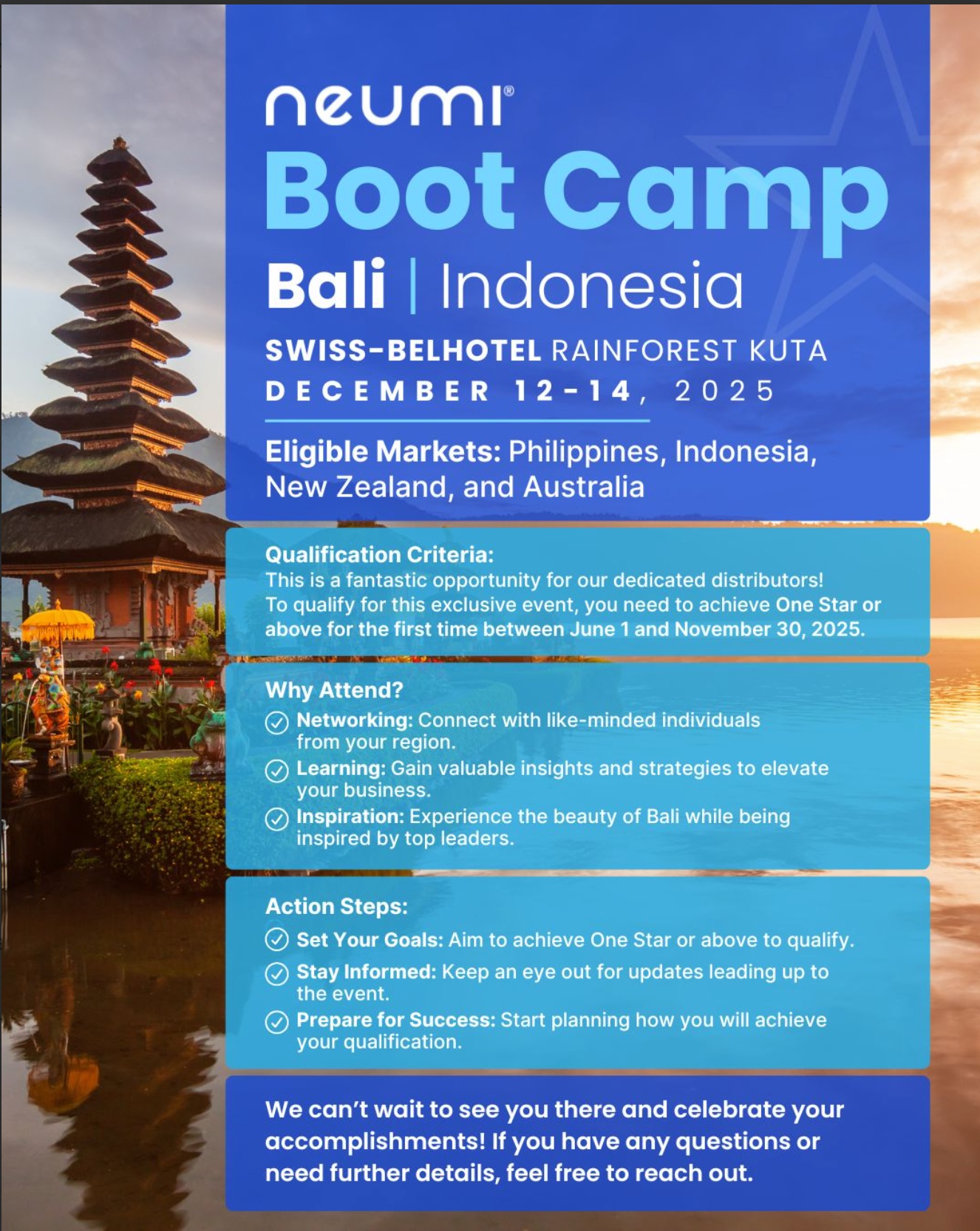 We at Neumi are very excited to announce the Neumi boot camp taking place in Bali, Indonesia, in December 2025!