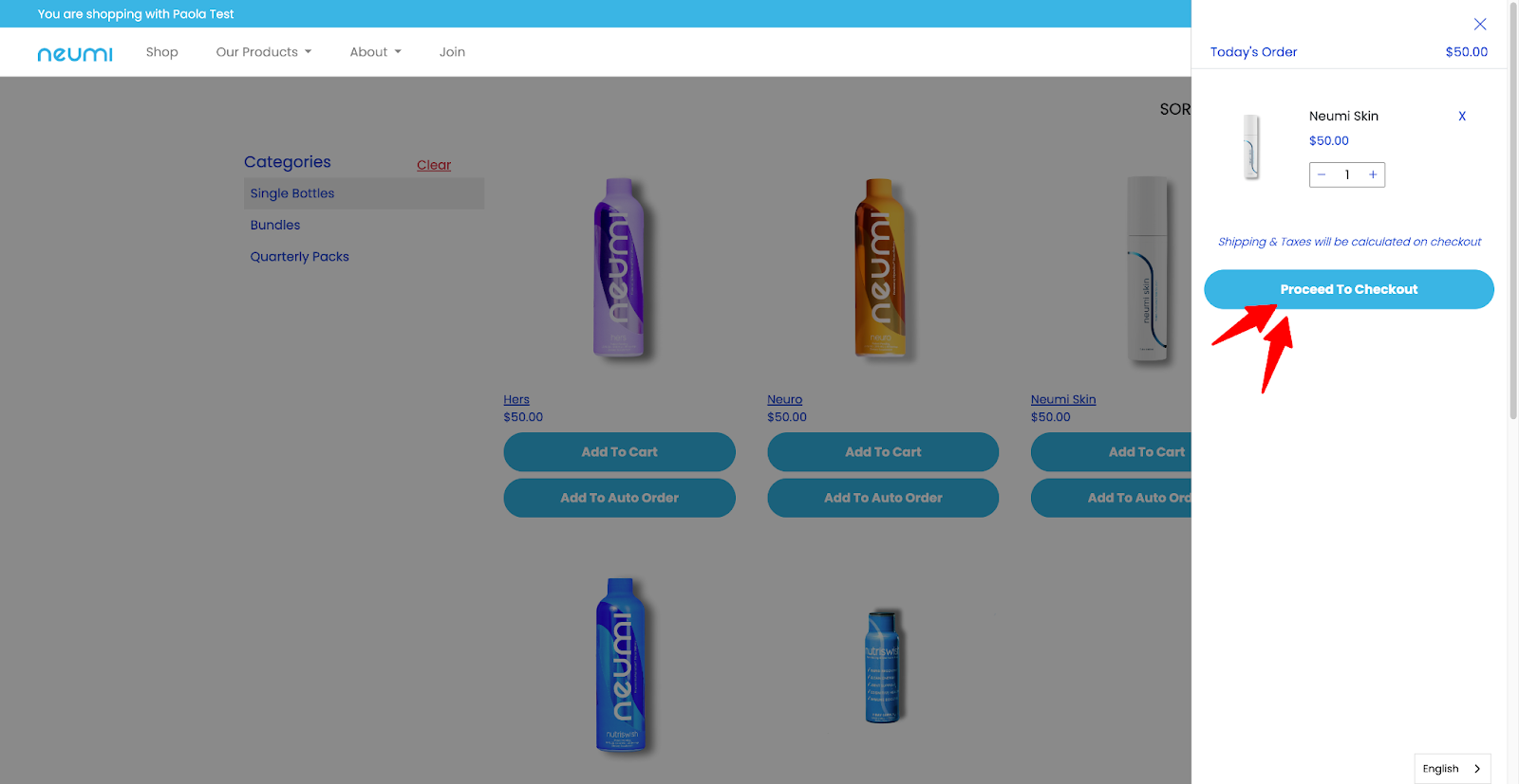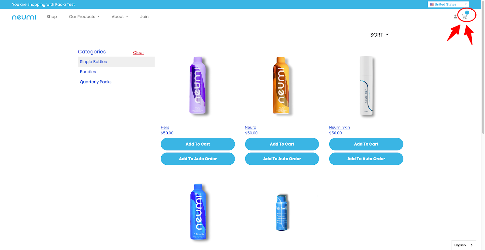 Click where it says, “Continue to Enrollment,” and you will be taken to the shop. To continue the process, you must choose at least one product to add to the cart (do not click on “Add to Auto Order.”)